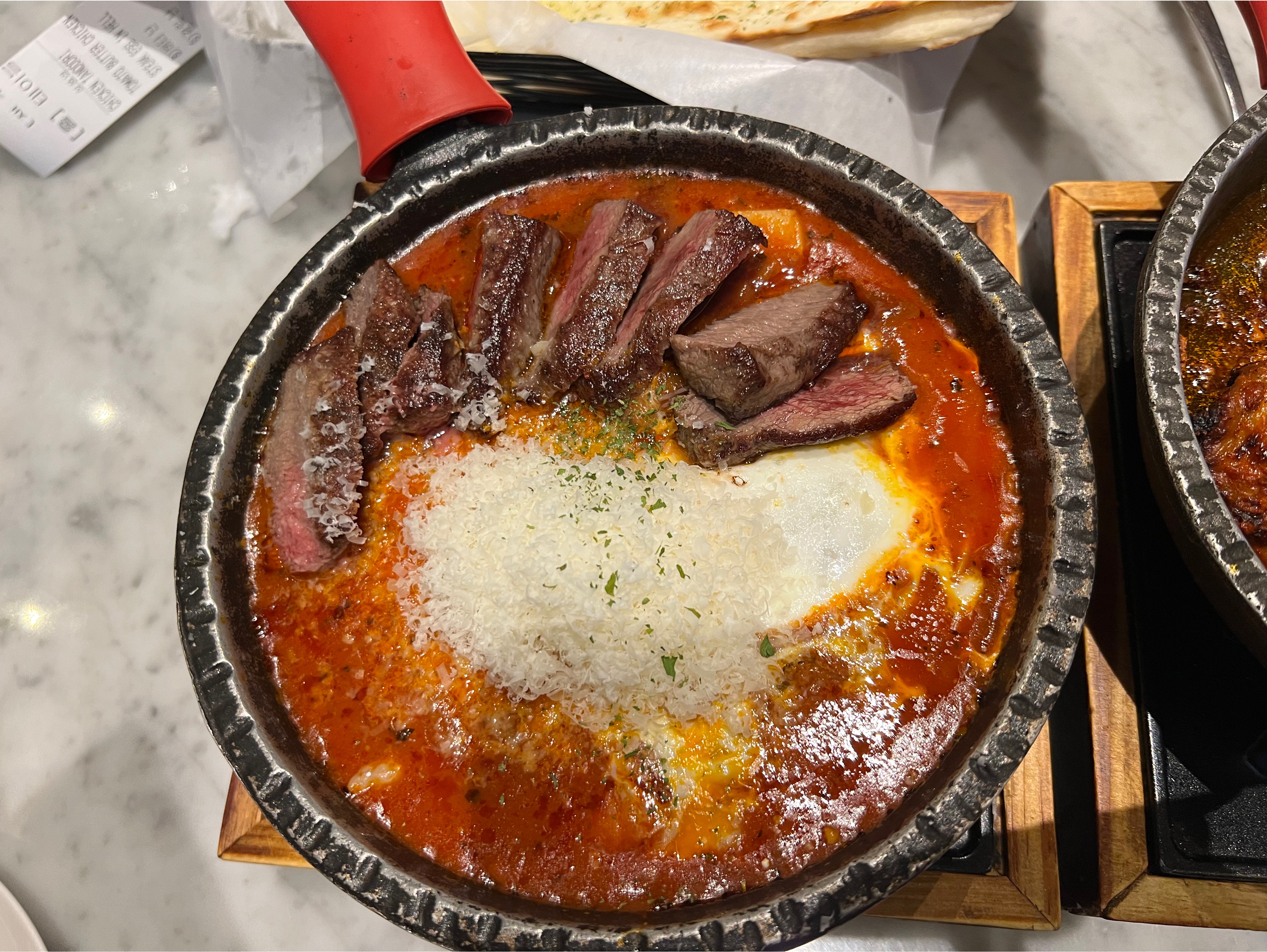 두 번째로 나온 스테이크 에그 인 헬. 스테이크는 질기지 않아 좋았음. 작은 계란을 쓴 것인지 계란이 작은 편이라 좀 컸으면 좋았을 것 같음.