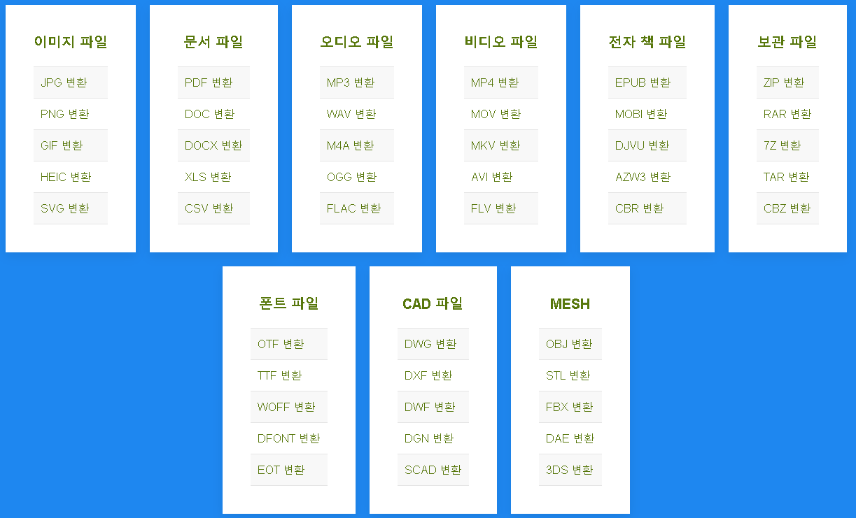 위 부분이 지원하는 포멧으로 대충 카테고리당 5개 대표 포멧을 지원하는듯 하다.