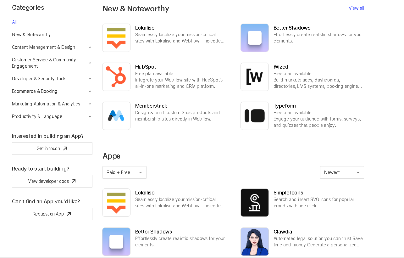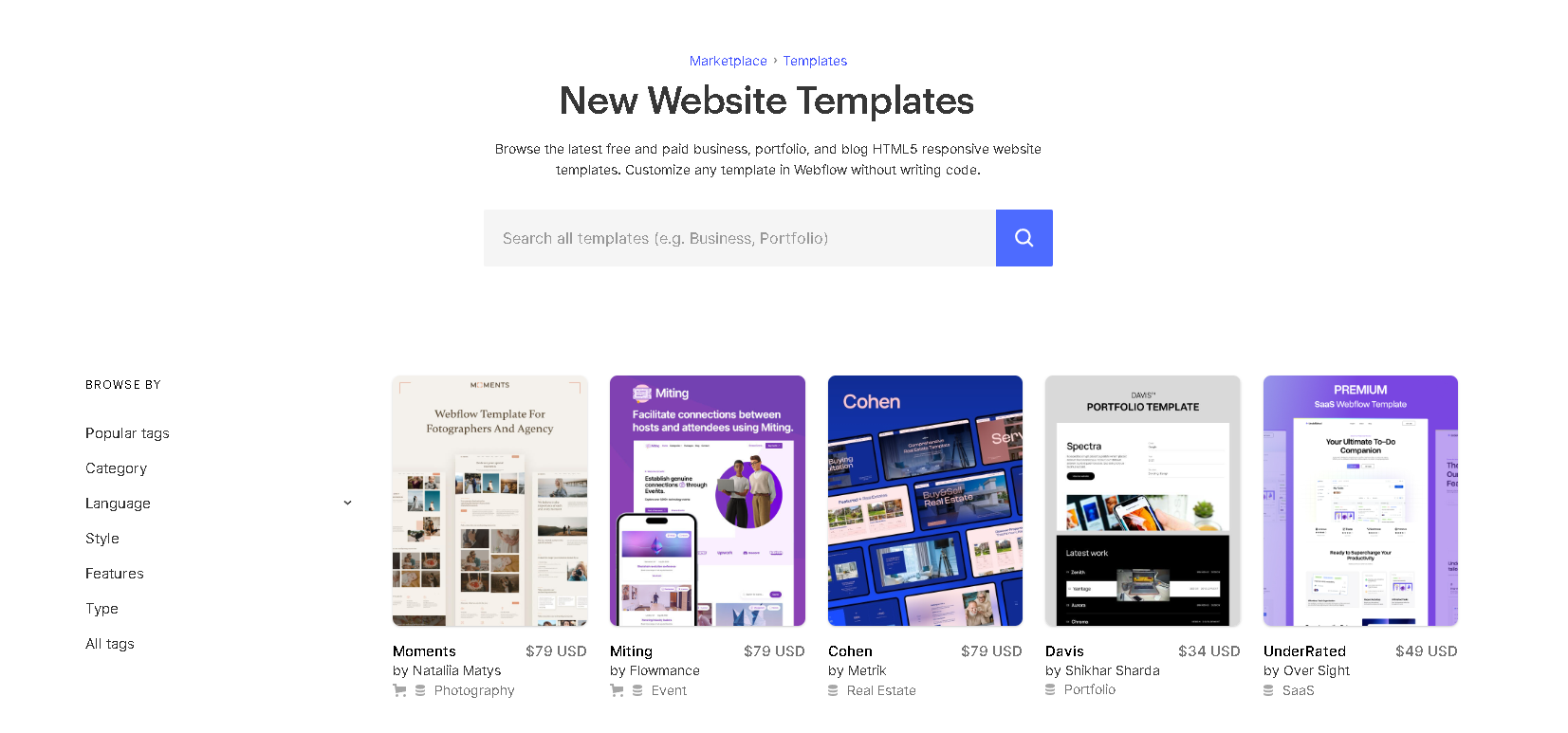 웹플로우의 장점은 마켓플레이스를 통해 다른 사람이 만든 템플릿을 가져다 사용할 수 있는 것이다.