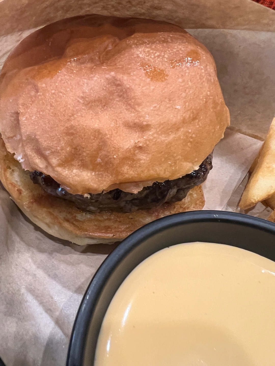아마도 그냥 버거에 저 치즈소스를 부어서? 찍어먹는 것 같다.
